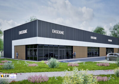 Ensemble de locaux d’activités neufs situé 5 rue du Commerce à Vendenheim, développé sur une surface totale d’environ 909 m², répartie en trois cellules d’activités adaptables selon le cahier des charges de l’occupant.